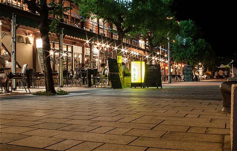 Dejima Wharf is right by the sea. It is literally four or five steps from the restaurant area. As such, you can dine while ships ferry to and fro right in front of you. Another unique feature is that the big wharf area is flexible and can accommodate groups of various sizes. Restaurants, bars and cafes are available for smaller groups, while larger groups of up to 1,000 people are welcome to the whole area, or the first and second floors separately. The Triangle Plaza next to the street is also available as a venue.