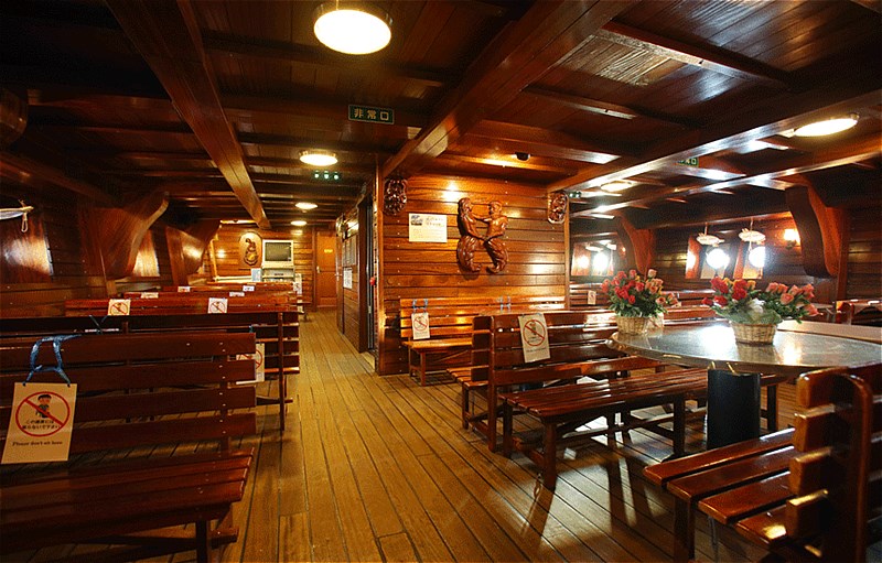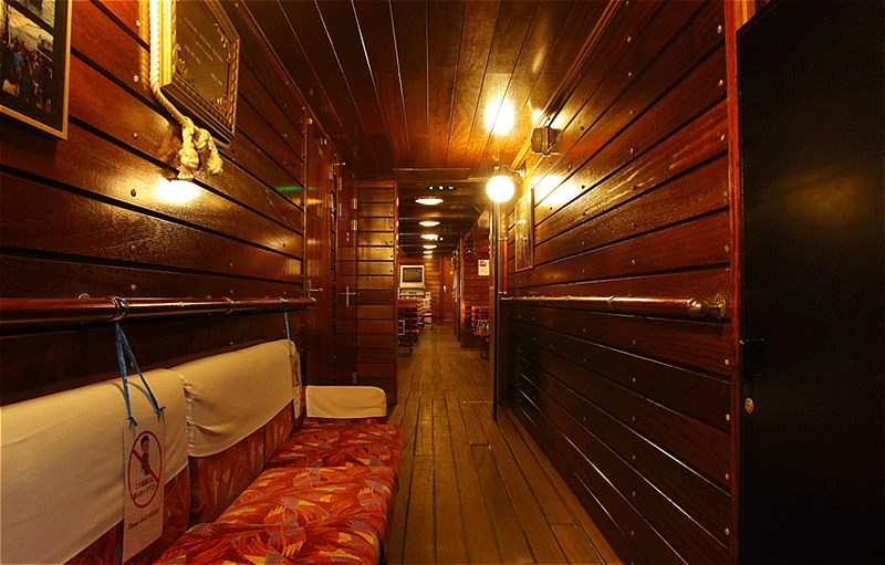 The Kanko Maru, gifted by the Netherlands, was a training vessel of the Edo Shogunate Navy. Each clan sent their best people to Nagasaki to learn about ship maneuvering techniques. It has been faithfully restored to its original condition, based on models and blueprints. The same materials are used in the interior and on the deck, giving her a unique style.
